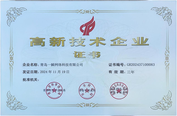 標(biāo)簽:青島一瞬網(wǎng)絡(luò)科技有限公司再度獲批高新技術(shù)企業(yè)認(rèn)定