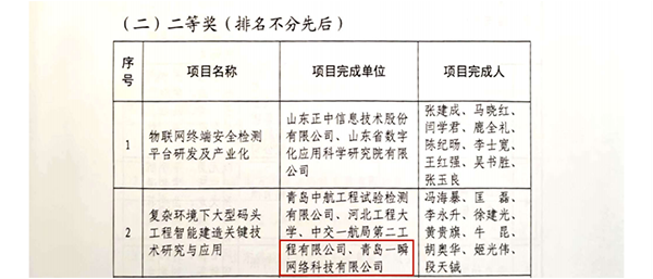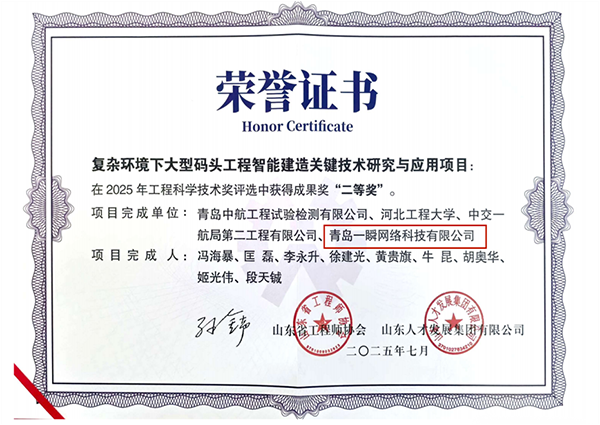 2025年度山東省工程師協(xié)會工程科學(xué)技術(shù)獎評選結(jié)果正式揭曉。由青島中航工程試驗(yàn)檢測有限公司、河北工程大學(xué)、中交一航局第二工程有限公司以及青島一瞬網(wǎng)絡(luò)科技有限公司(以下簡稱一瞬網(wǎng)絡(luò))共同完成的 “復(fù)雜環(huán)境下大型碼頭工程智能建造關(guān)鍵技術(shù)研究與應(yīng)用” 項(xiàng)目,從眾多申報(bào)成果中脫穎而出,榮獲“成果獎二等獎”!